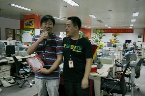 明通老員工,“資歷哥”詹玉明給虎隊PK勝出的同學頒發獎金
