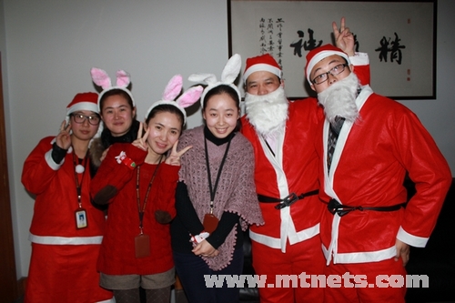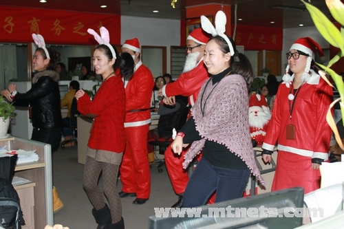 第二波活動(dòng)是平安夜每個(gè)明通人都受到了一個(gè)精美包裝的蘋果,公司祝大家來(lái)年平平安安,圓圓滿滿。圣誕節(jié)當(dāng)天圣誕老人和兔女郎們閃亮登場(chǎng),為大家表演了明通版的《江南STYLE》,并為大家派發(fā)了襪子,毛絨玩具等各種小禮物。