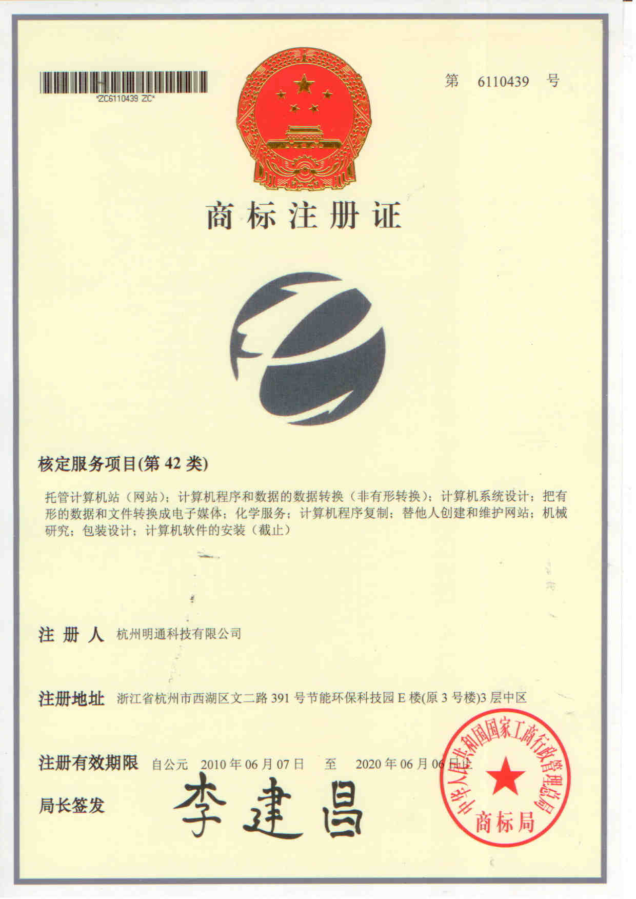 杭州明通科技有限公司的注冊商標為公司標志圖案,由旗下24大行業網站共同使用,核定服務項目為第42類,具體包括托管計算機站(網站);計算機程序和數據的數據轉換(非有形轉換);計算機系統設計;把有形的數據和文件轉換成電子媒體;化學服務;計算機程序復制;替他人創建和維護網站;機械研究;包裝設計;計算機軟件的安裝等服務項目。