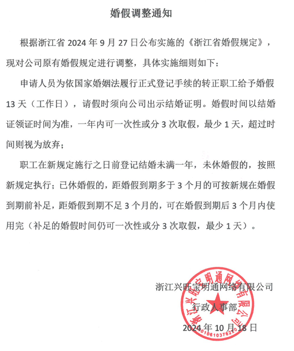 我單方面宣布,興旺寶這波贏麻了!前腳《浙江省婚假規(guī)定》剛剛頒布,興旺寶就跟上了,一點(diǎn)不帶拖泥帶水的。整整13天婚假!它這就來了,即刻實(shí)施!
